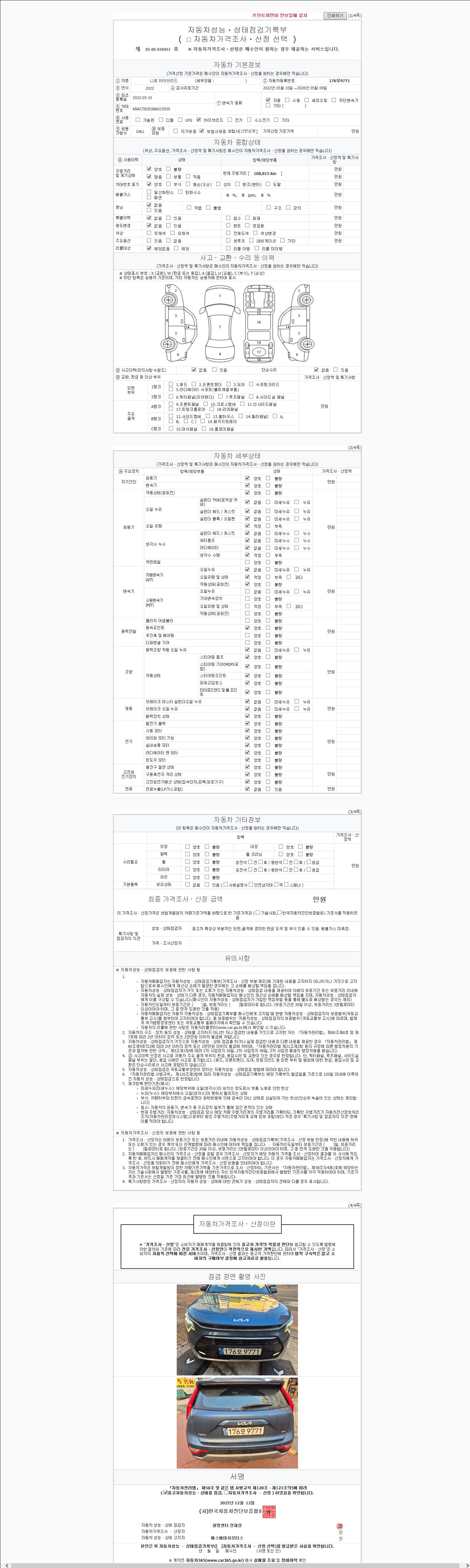 오토|휘발유 하이브리드|2022년 5월|108,815 km 176모9771| cc|파란색|무사고 |