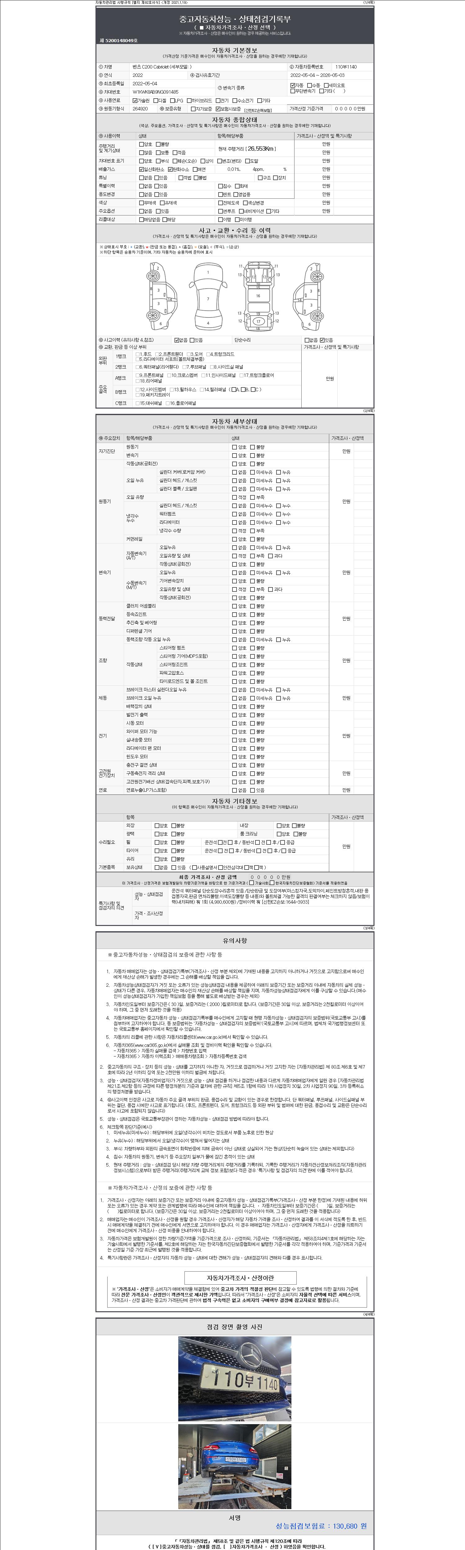 -중고자동차 매매업자를 통해 차량을 구입하실 경우 반드시 "중고자동차 성능, 상태점검 기록부"를 교뷰 받으셔야 하며, 매매업자는 반드시 의무 교부 하여야 압니다.