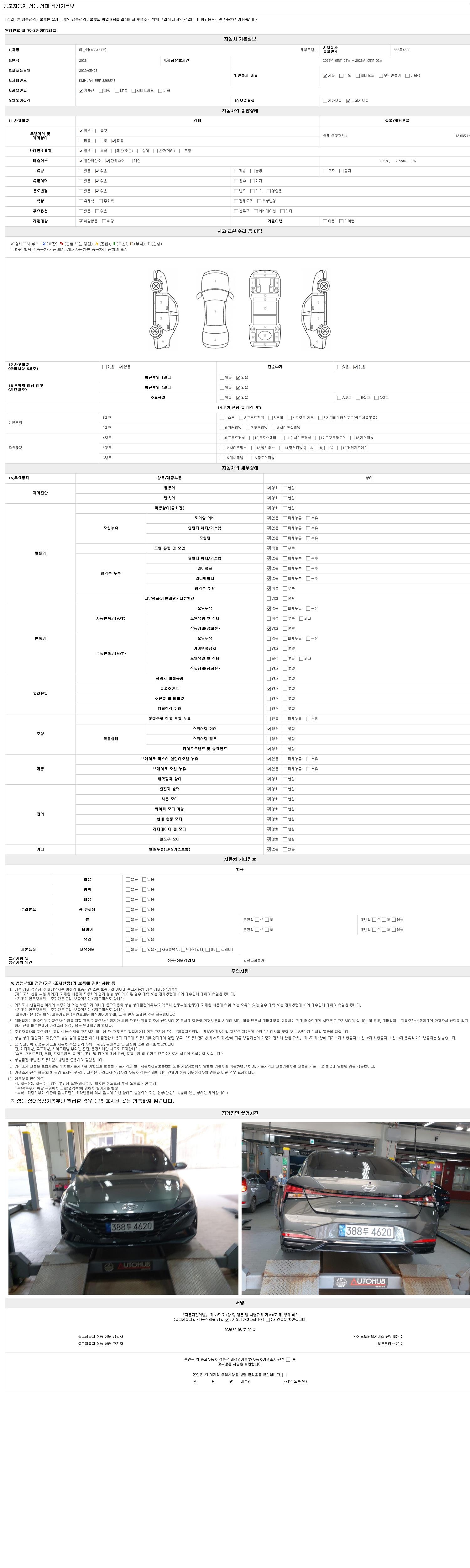 2. 차량 등록증이나 성능점검지 등을 상담자에게 요청및 확인하시고 사전에 미리 점검 하시기를 권유드립니다.