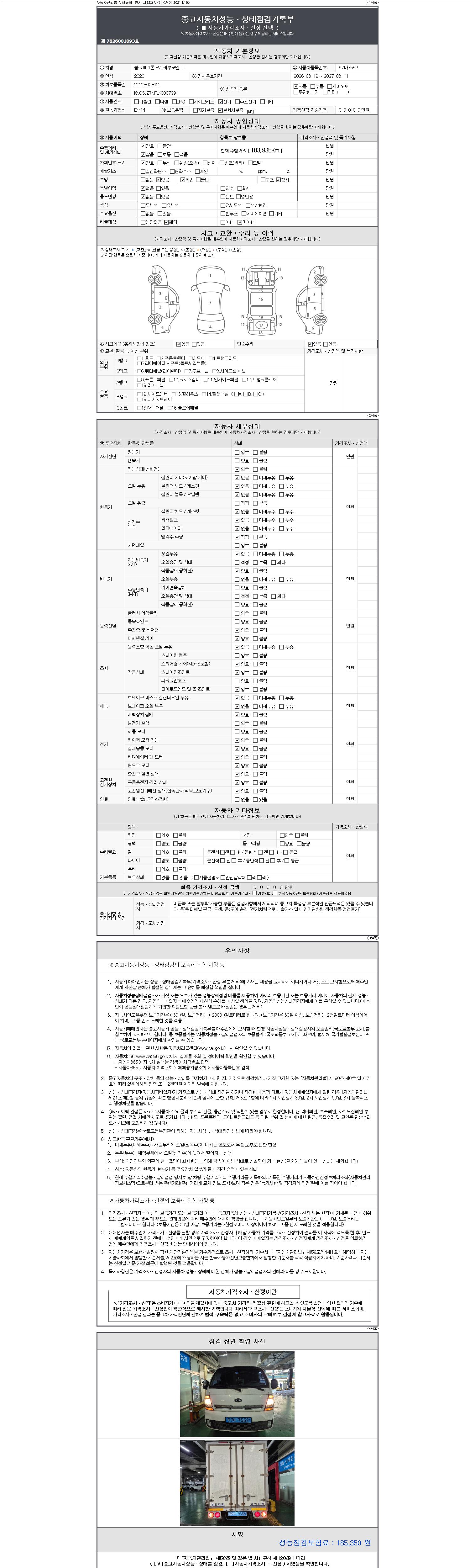 오토|전기|2020년 3월|183,935 km 97다7552| cc|흰색|무사고 |
