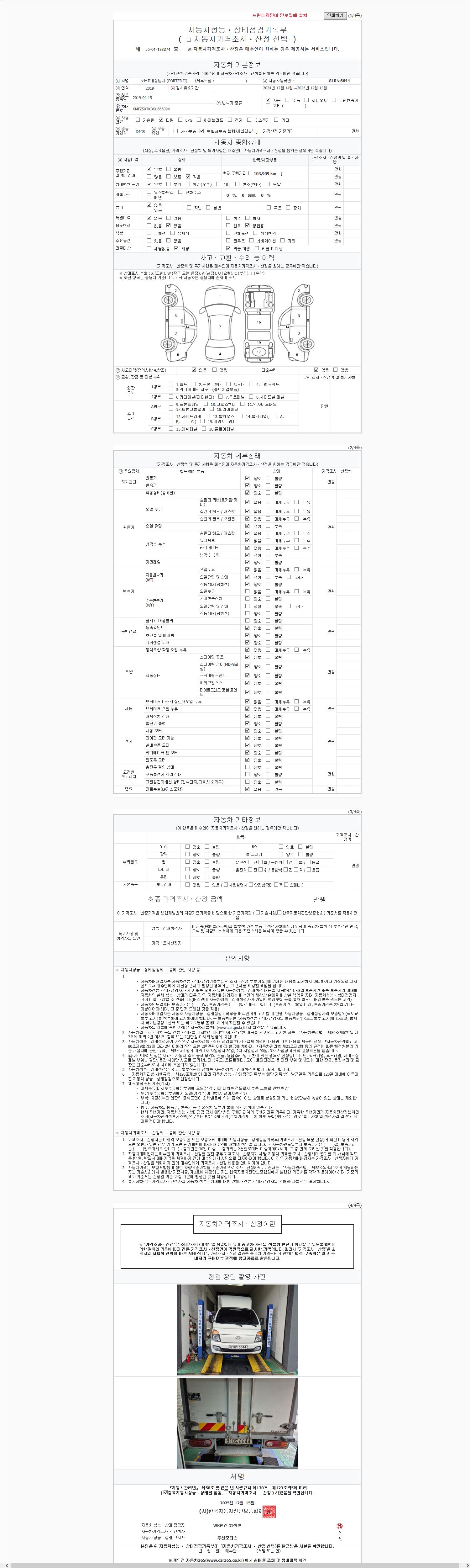 | 주행거리 | 103,000 km | 차량번호 | 810도6644 |