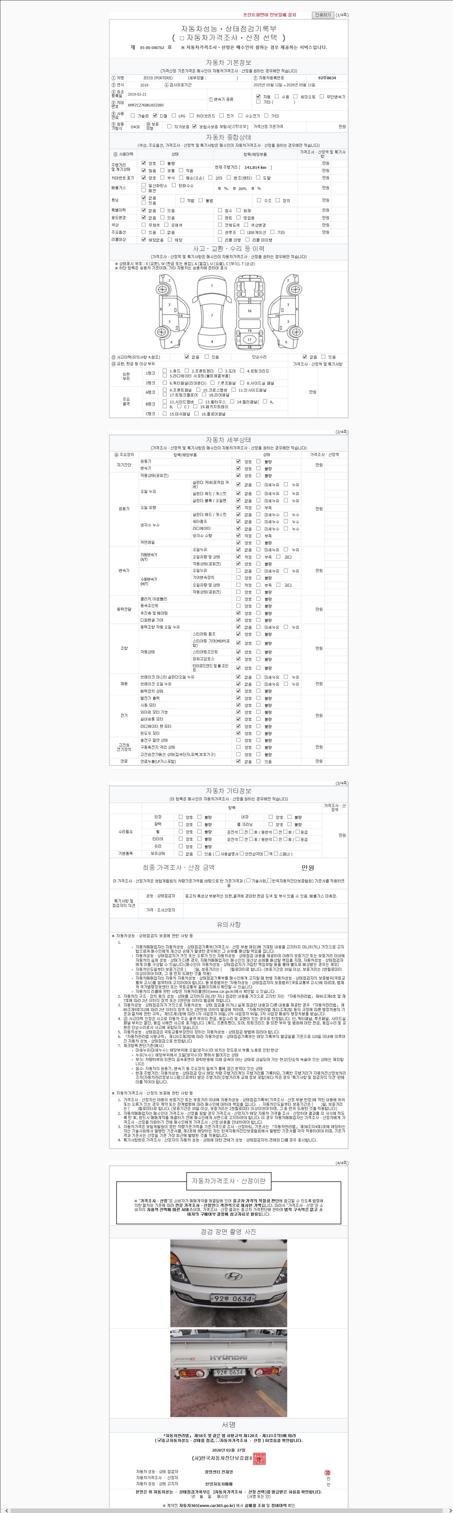 | 주행거리 | 141,814 km | 차량번호 | 92루0634 |