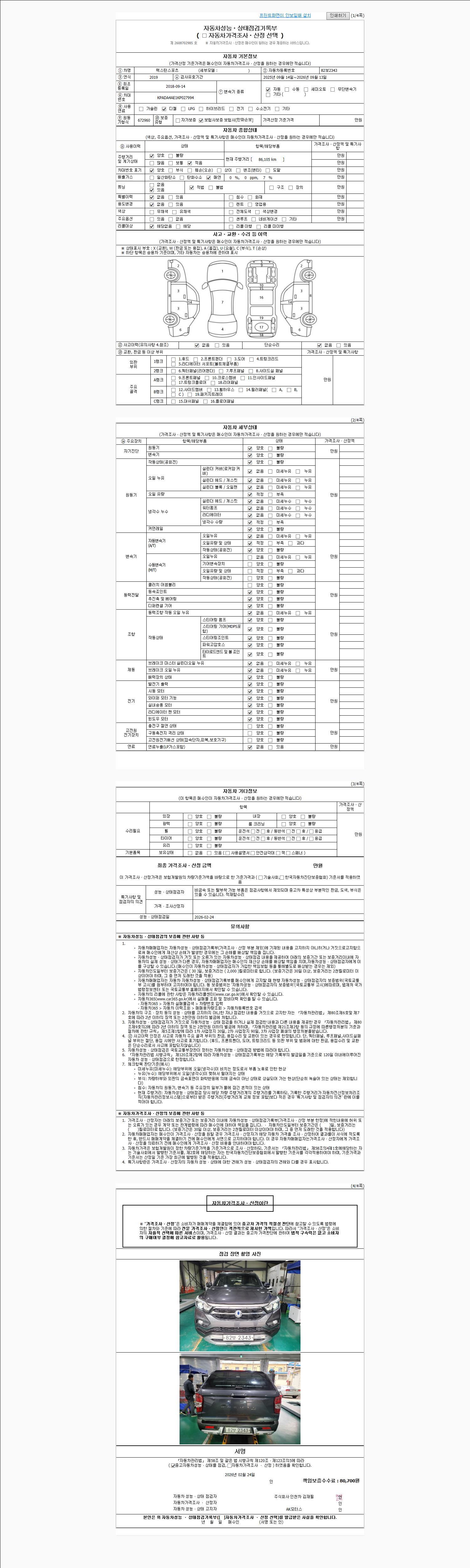 | 주행거리 | 86,105 km | 차량번호 | 82보2343 |