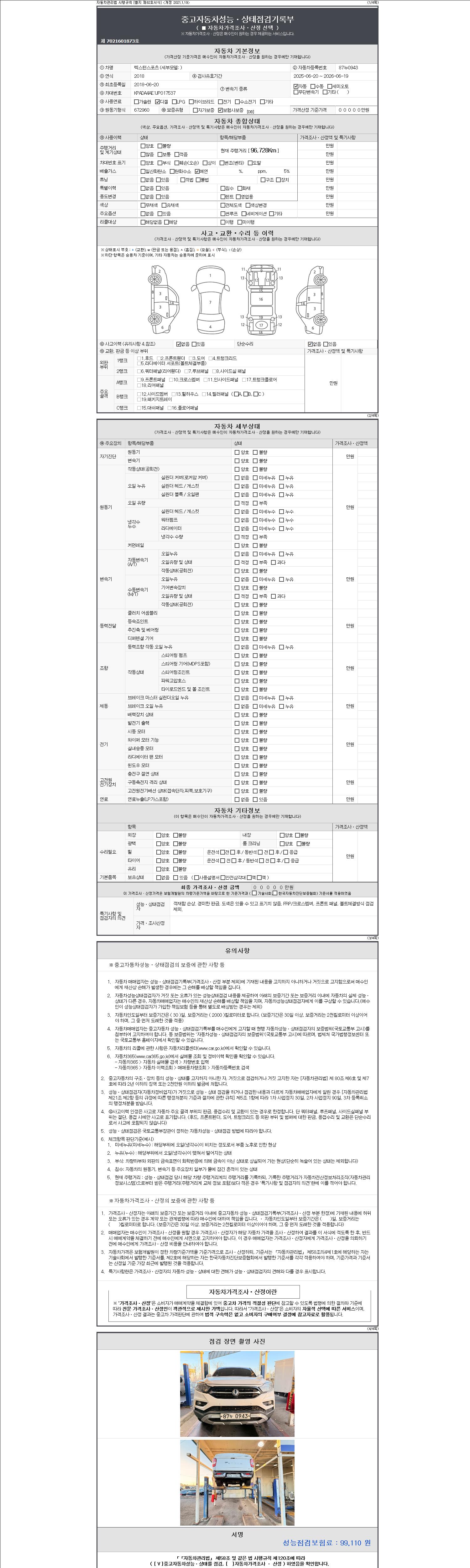 | 주행거리 | 96,728 km | 차량번호 | 87누0943 |