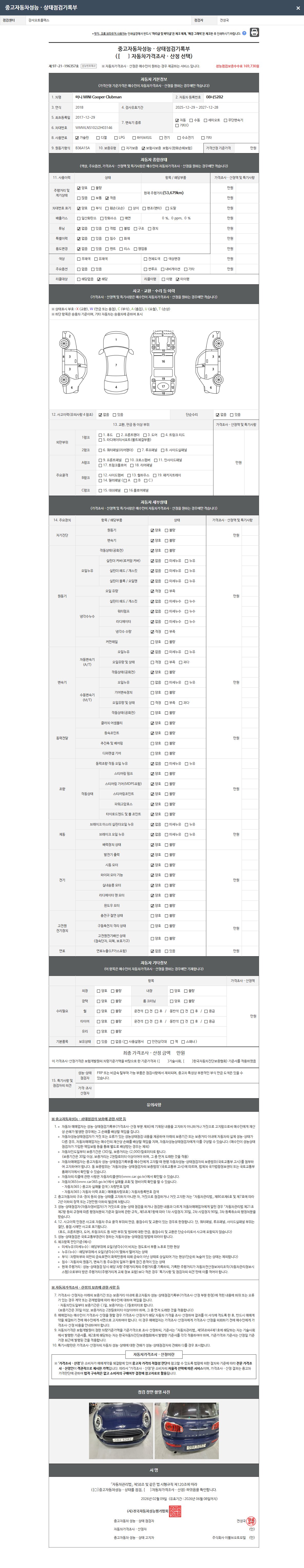 2. 차량 등록증이나 성능점검지 등을 상담자에게 요청및 확인하시고 사전에 미리 점검 하시기를 권유드립니다.