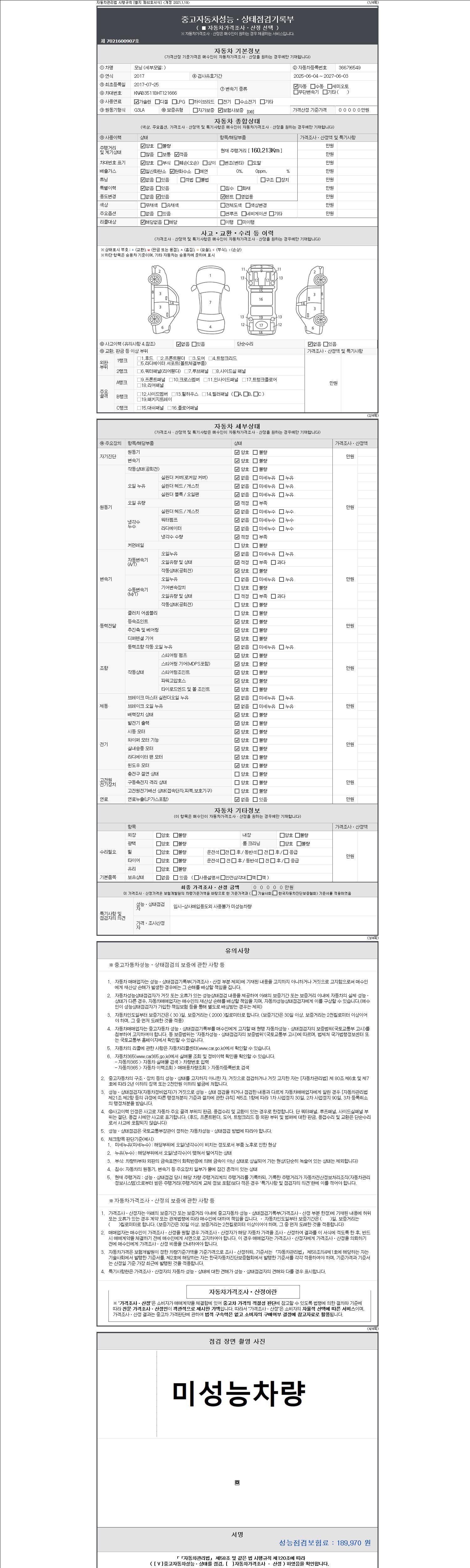 2. 차량 등록증이나 성능점검지 등을 상담자에게 요청및 확인하시고 사전에 미리 점검 하시기를 권유드립니다.