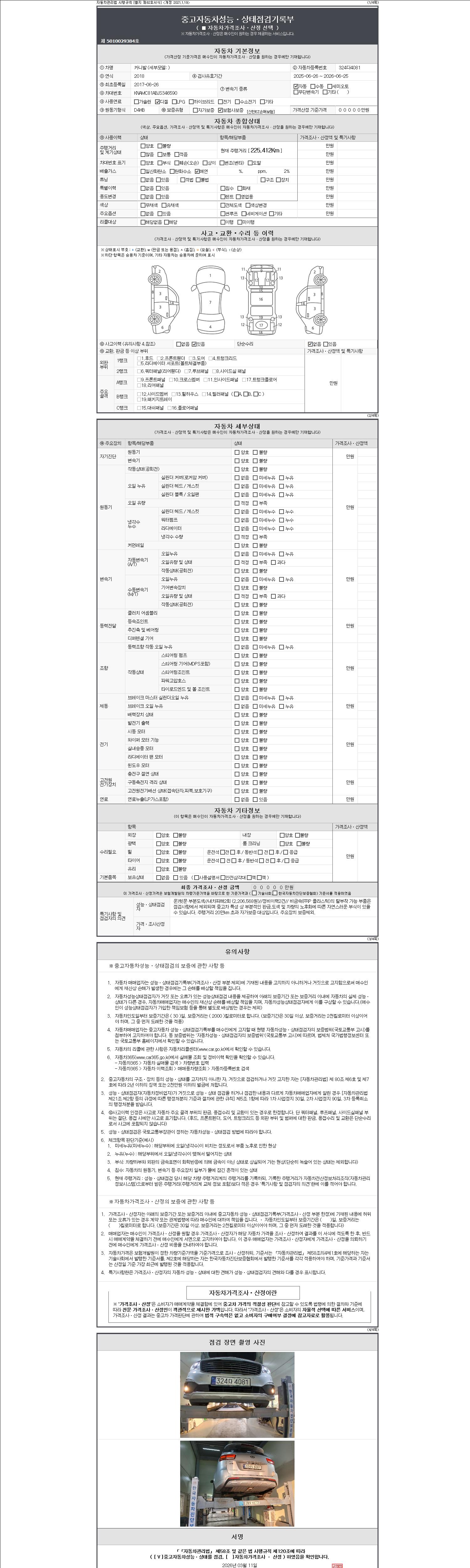 | 사고유무 | 성능기록부 참조 | 제시번호 | 제 20261102345 호 |