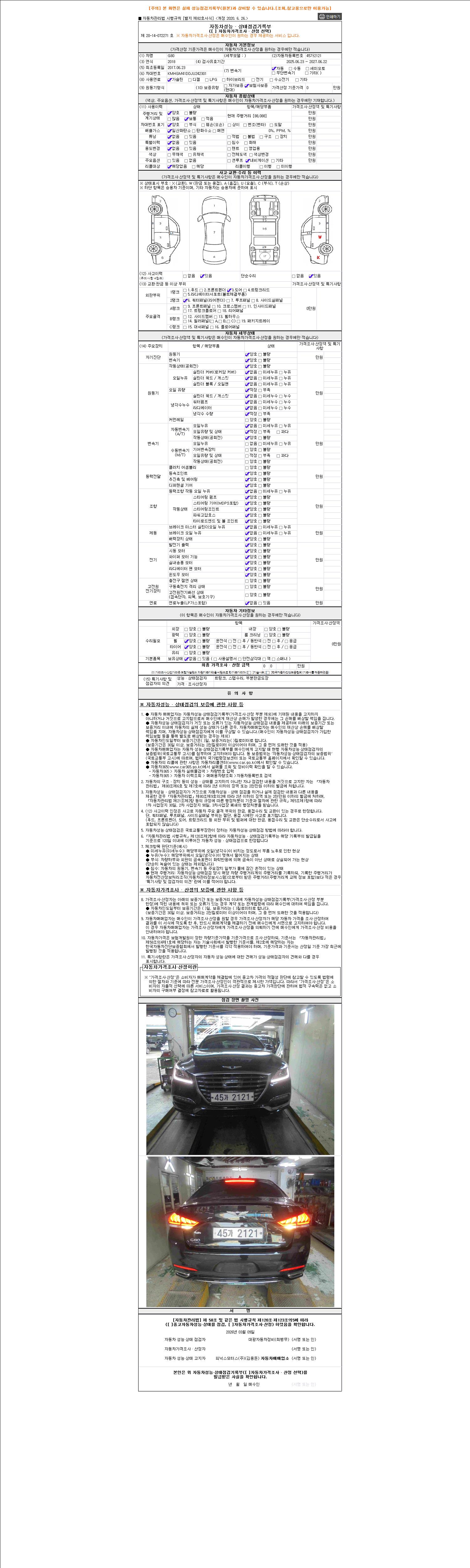 2. 차량 등록증이나 성능점검지 등을 상담자에게 요청및 확인하시고 사전에 미리 점검 하시기를 권유드립니다.