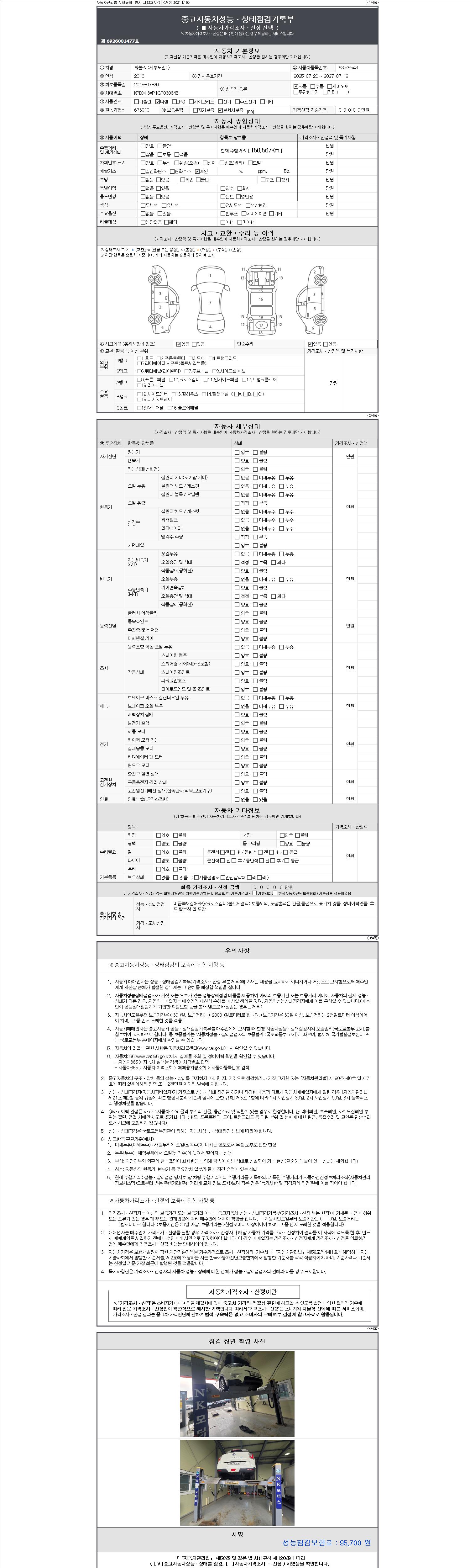 2. 차량 등록증이나 성능점검지 등을 상담자에게 요청및 확인하시고 사전에 미리 점검 하시기를 권유드립니다.
