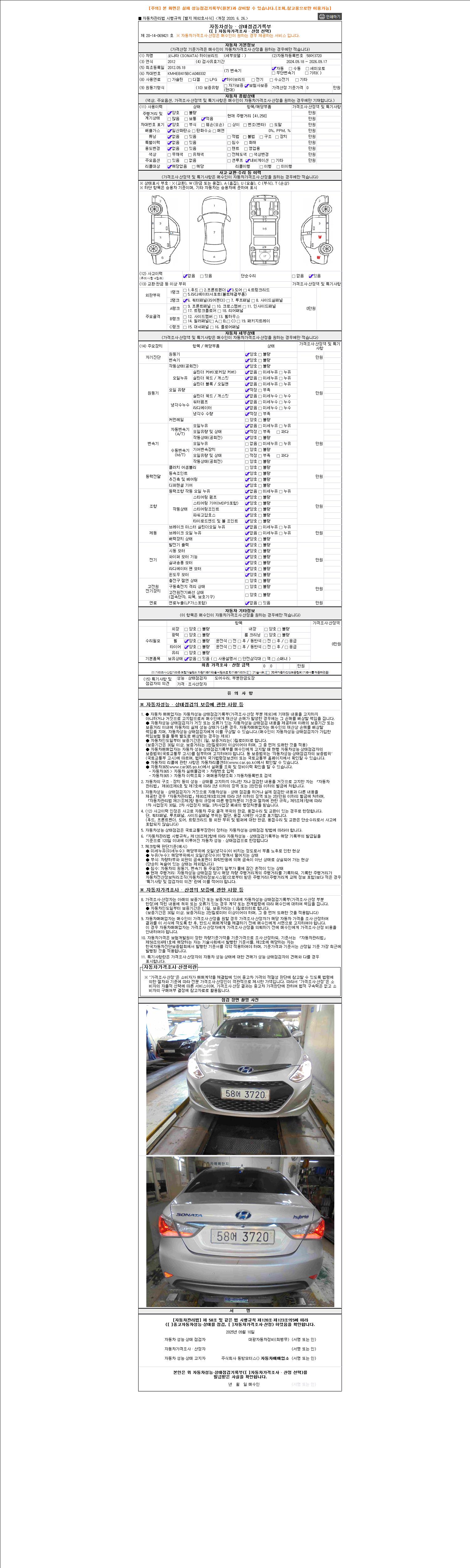 2. 차량 등록증이나 성능점검지 등을 상담자에게 요청및 확인하시고 사전에 미리 점검 하시기를 권유드립니다.