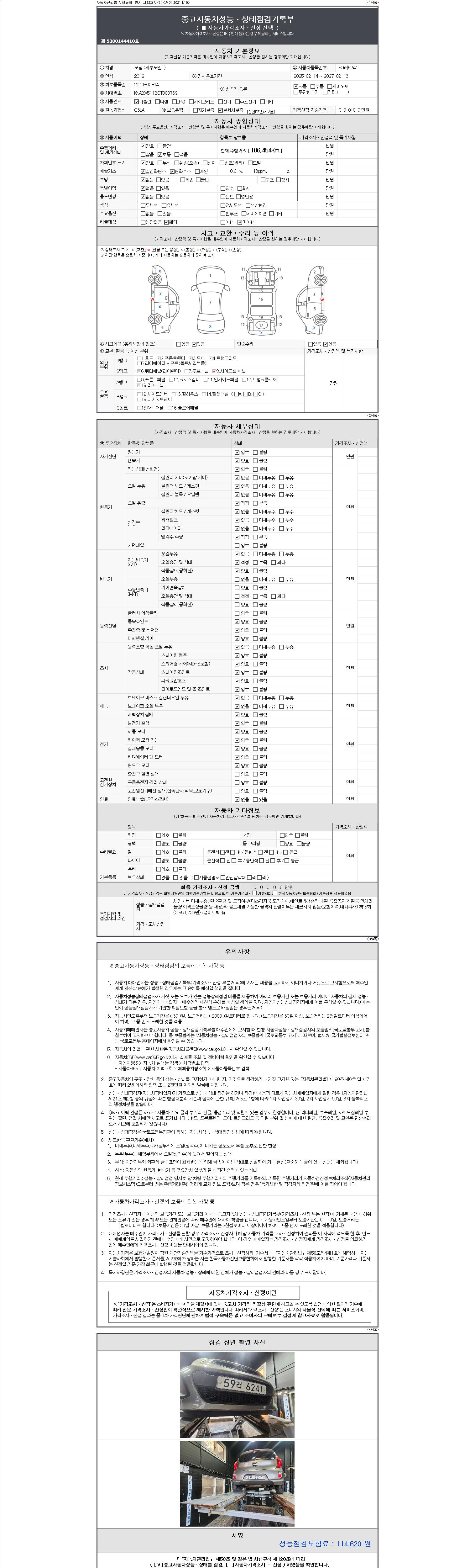 | 주행거리 | 106,454 km | 차량번호 | 59러6241 |