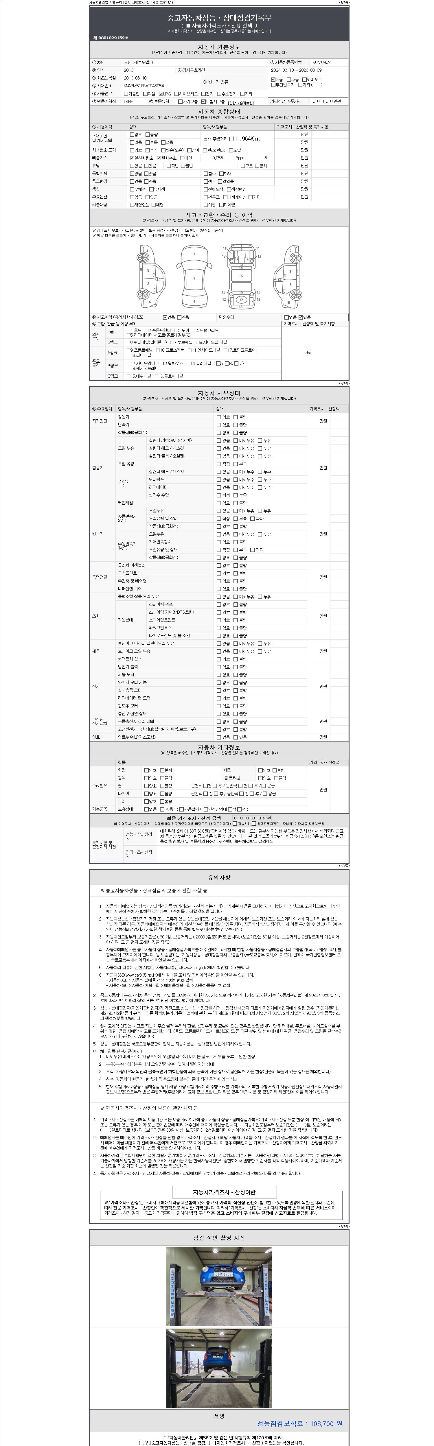 | 주행거리 | 111,964 km | 차량번호 | 56무6908 |