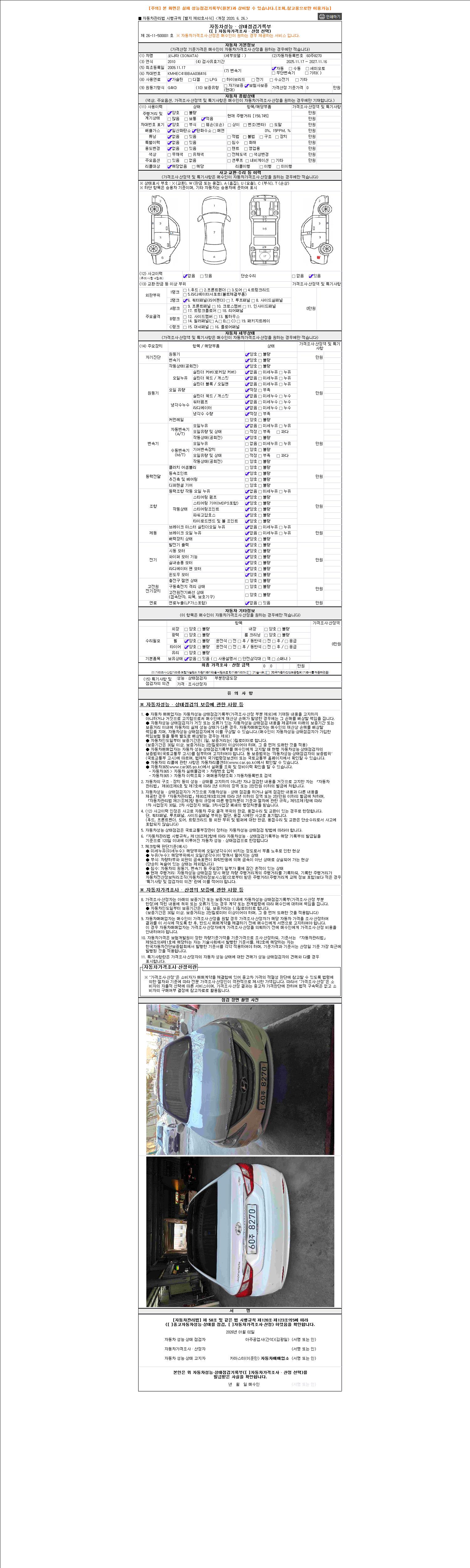 2. 차량 등록증이나 성능점검지 등을 상담자에게 요청및 확인하시고 사전에 미리 점검 하시기를 권유드립니다.