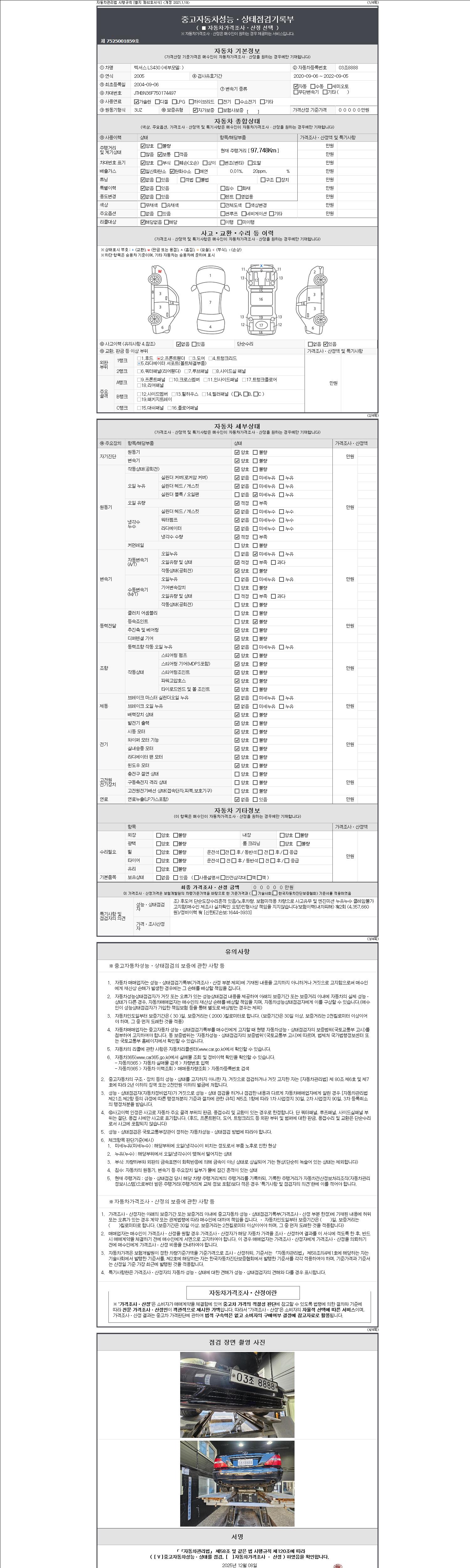 2. 차량 등록증이나 성능점검지 등을 상담자에게 요청및 확인하시고 사전에 미리 점검 하시기를 권유드립니다.