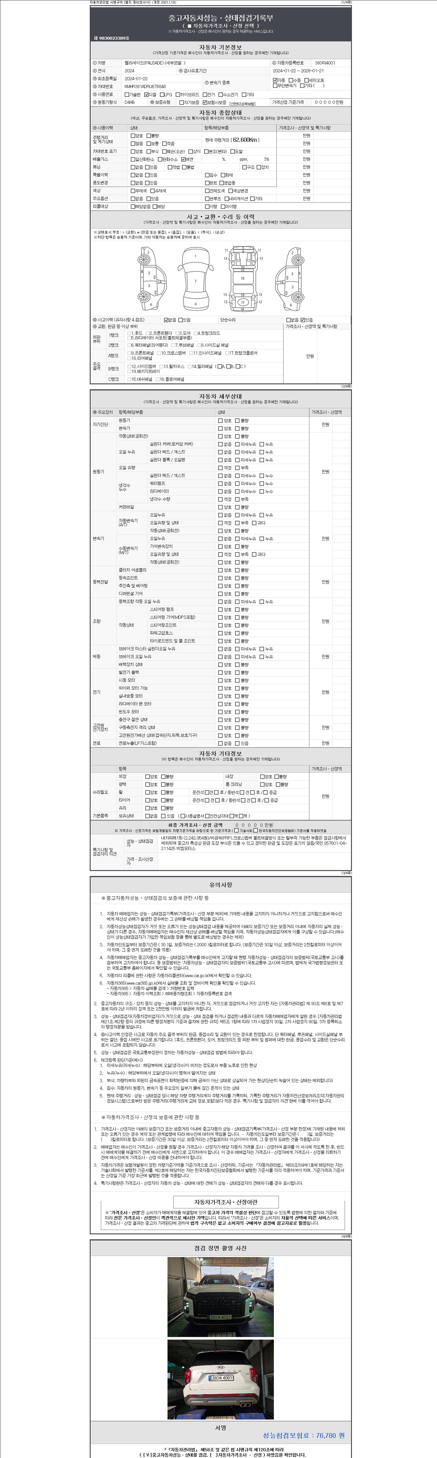 2. 차량 등록증이나 성능점검지 등을 상담자에게 요청및 확인하시고 사전에 미리 점검 하시기를 권유드립니다.