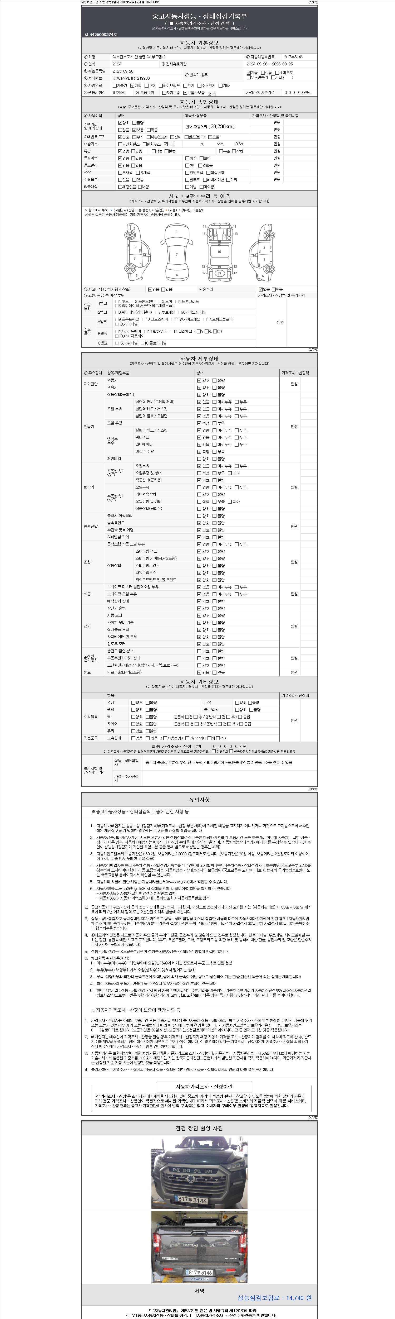 | 주행거리 | 39,790 km | 차량번호 | 817부3146 |