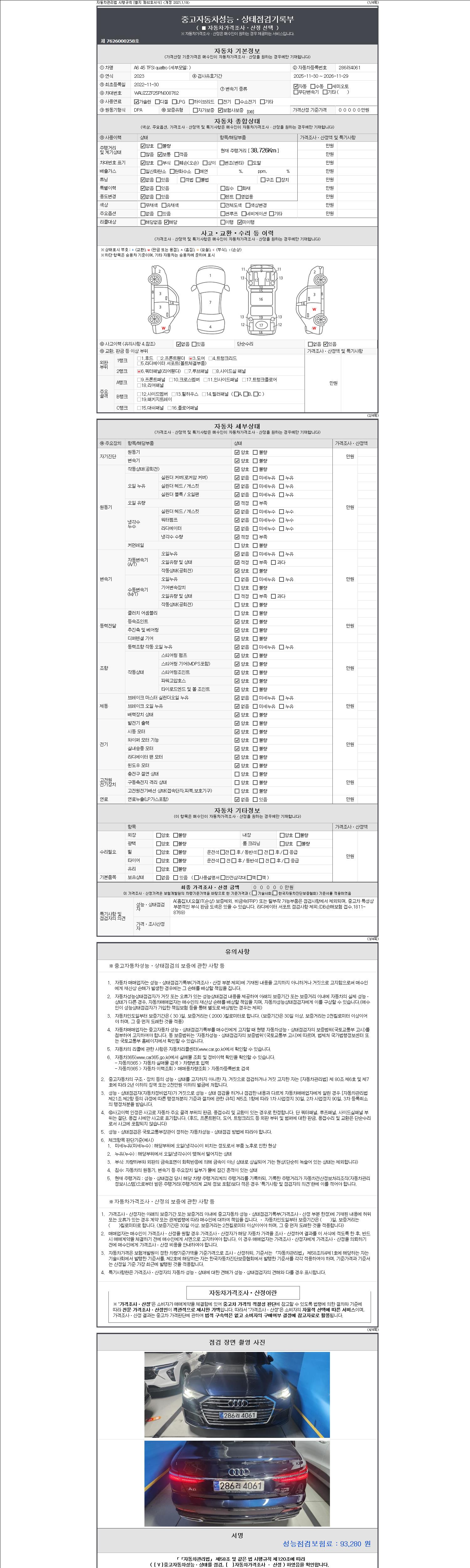 -중고자동차 매매업자를 통해 차량을 구입하실 경우 반드시 "중고자동차 성능, 상태점검 기록부"를 교뷰 받으셔야 하며, 매매업자는 반드시 의무 교부 하여야 압니다.