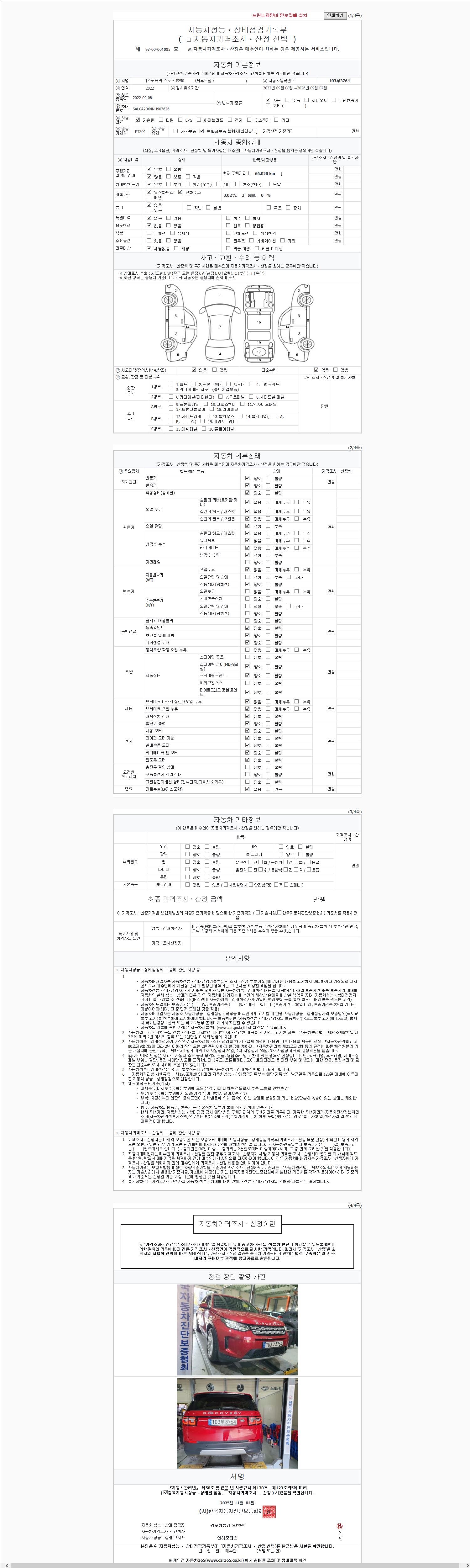 2. 차량 등록증이나 성능점검지 등을 상담자에게 요청및 확인하시고 사전에 미리 점검 하시기를 권유드립니다.