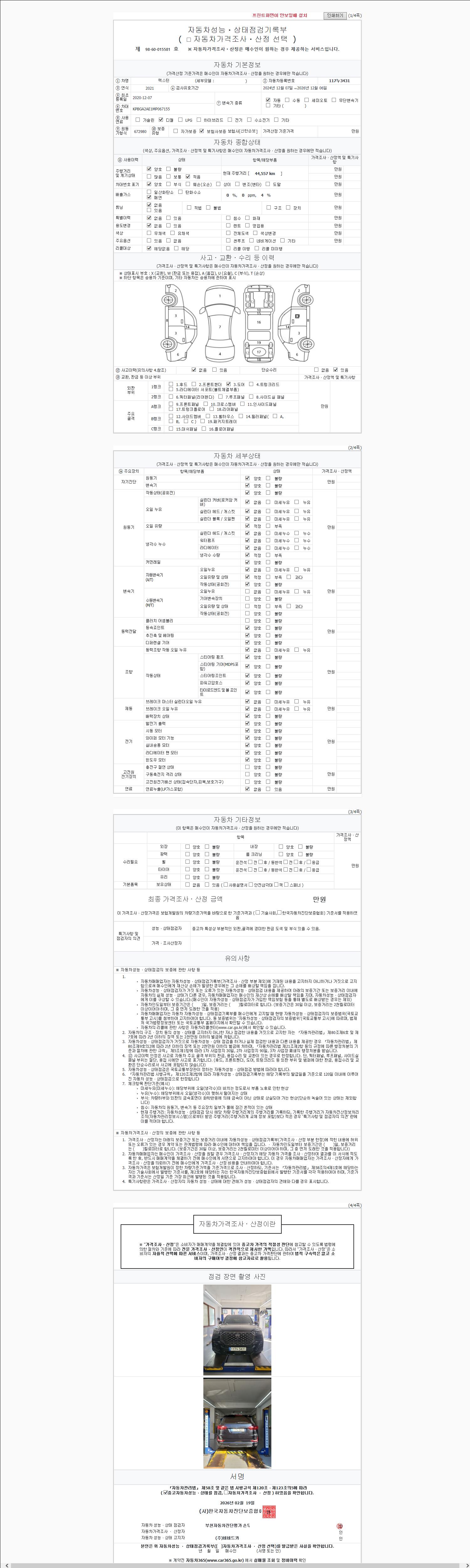 2. 차량 등록증이나 성능점검지 등을 상담자에게 요청및 확인하시고 사전에 미리 점검 하시기를 권유드립니다.