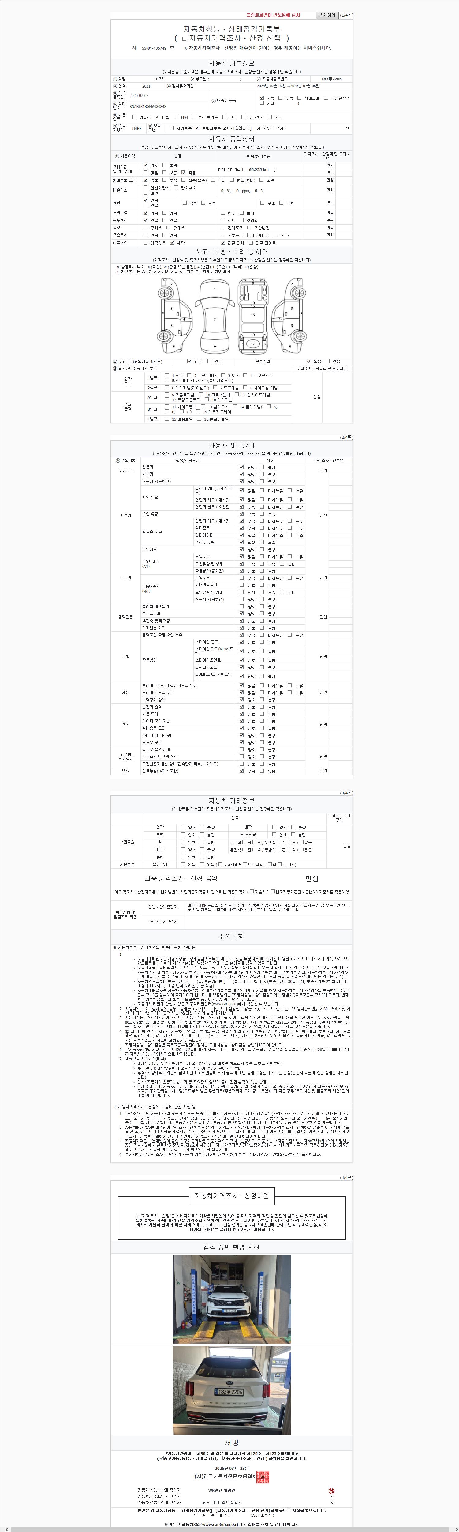 | 주행거리 | 66,255 km | 차량번호 | 183두2206 |