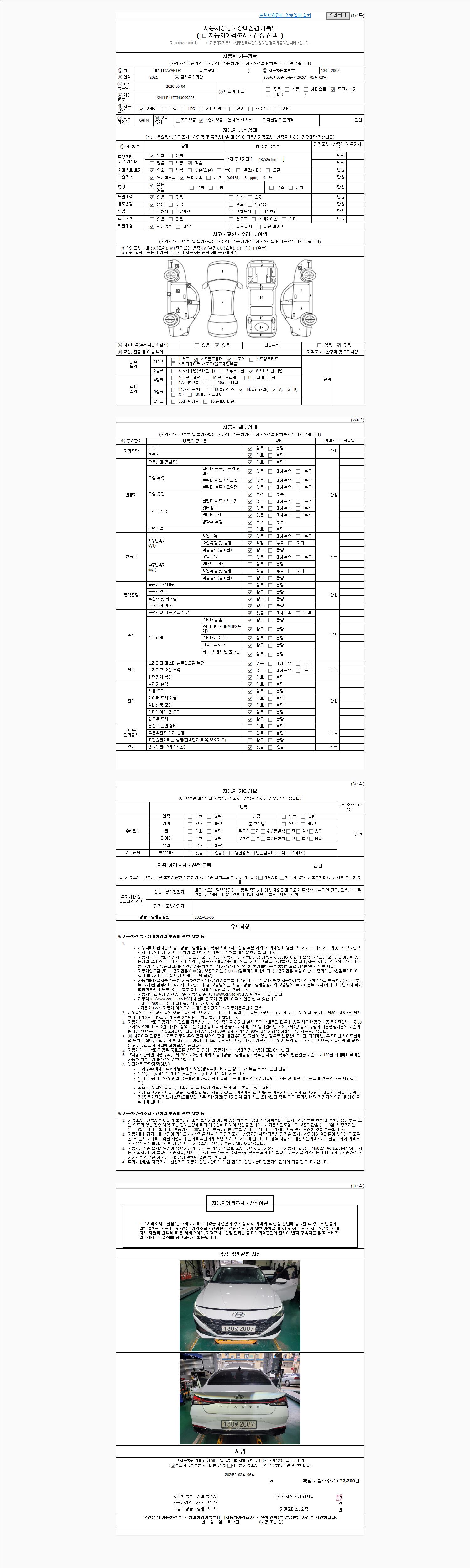2. 차량 등록증이나 성능점검지 등을 상담자에게 요청및 확인하시고 사전에 미리 점검 하시기를 권유드립니다.