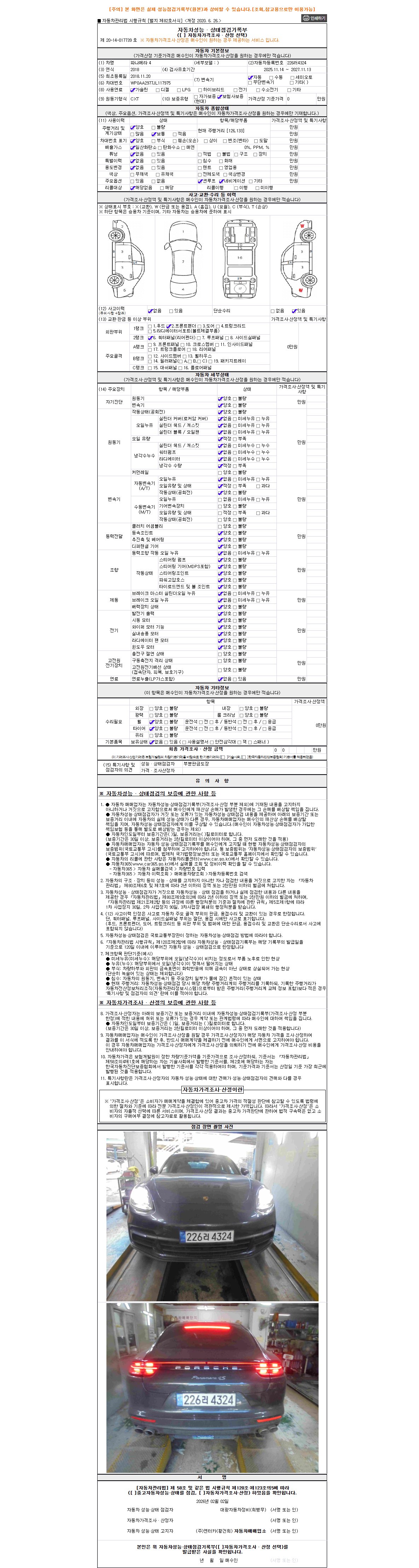 | 사고유무 | 성능기록부 참조 | 제시번호 | 제 2026006925 호 |