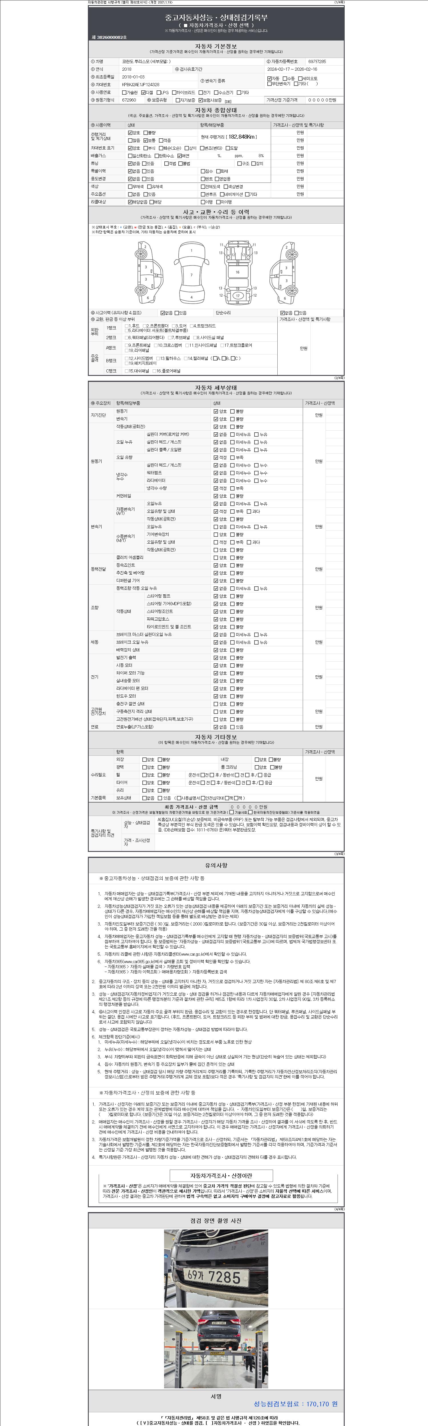 2. 차량 등록증이나 성능점검지 등을 상담자에게 요청및 확인하시고 사전에 미리 점검 하시기를 권유드립니다.