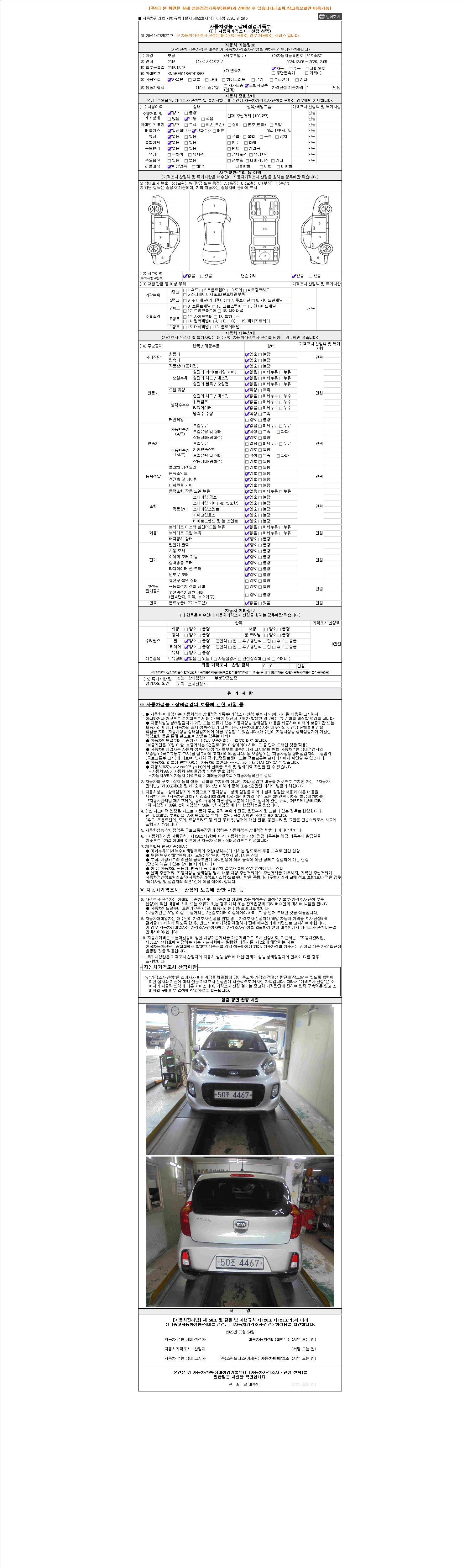 2. 차량 등록증이나 성능점검지 등을 상담자에게 요청및 확인하시고 사전에 미리 점검 하시기를 권유드립니다.