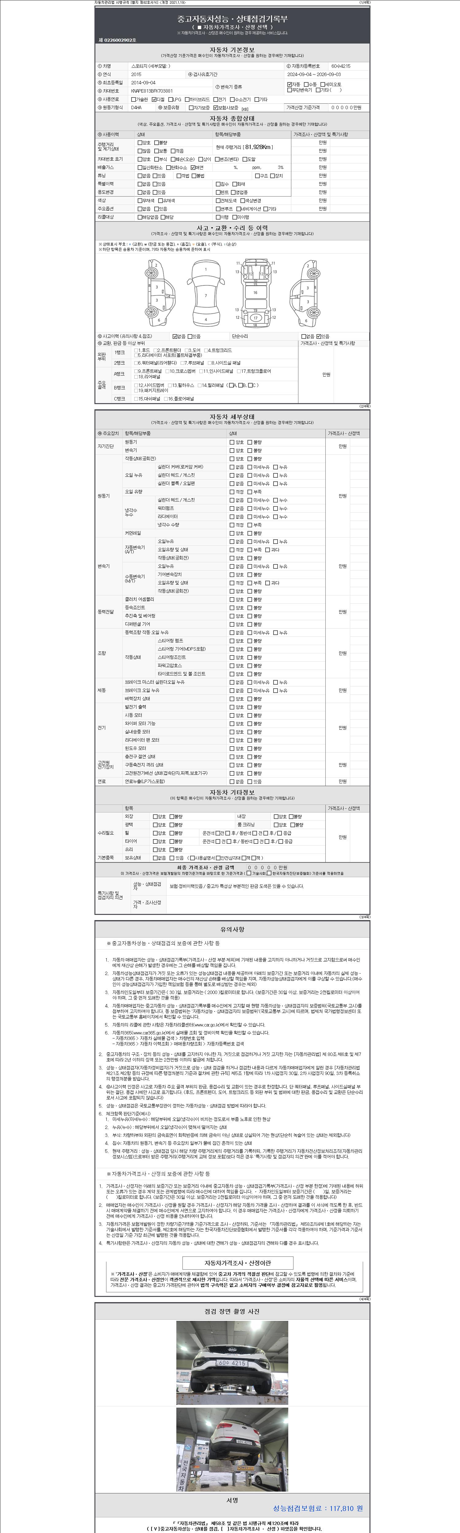 2. 차량 등록증이나 성능점검지 등을 상담자에게 요청및 확인하시고 사전에 미리 점검 하시기를 권유드립니다.