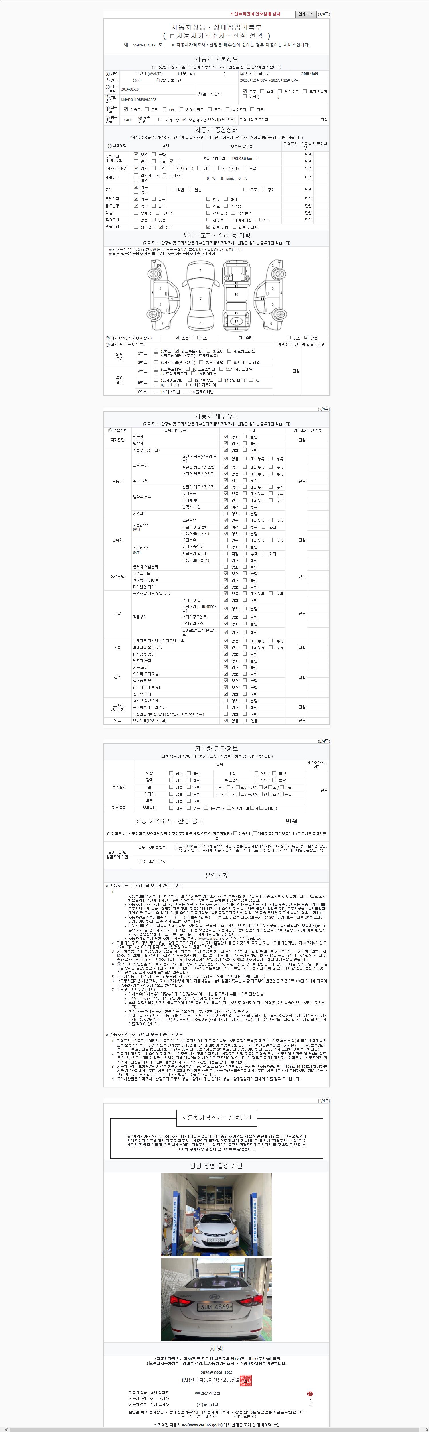 2. 차량 등록증이나 성능점검지 등을 상담자에게 요청및 확인하시고 사전에 미리 점검 하시기를 권유드립니다.