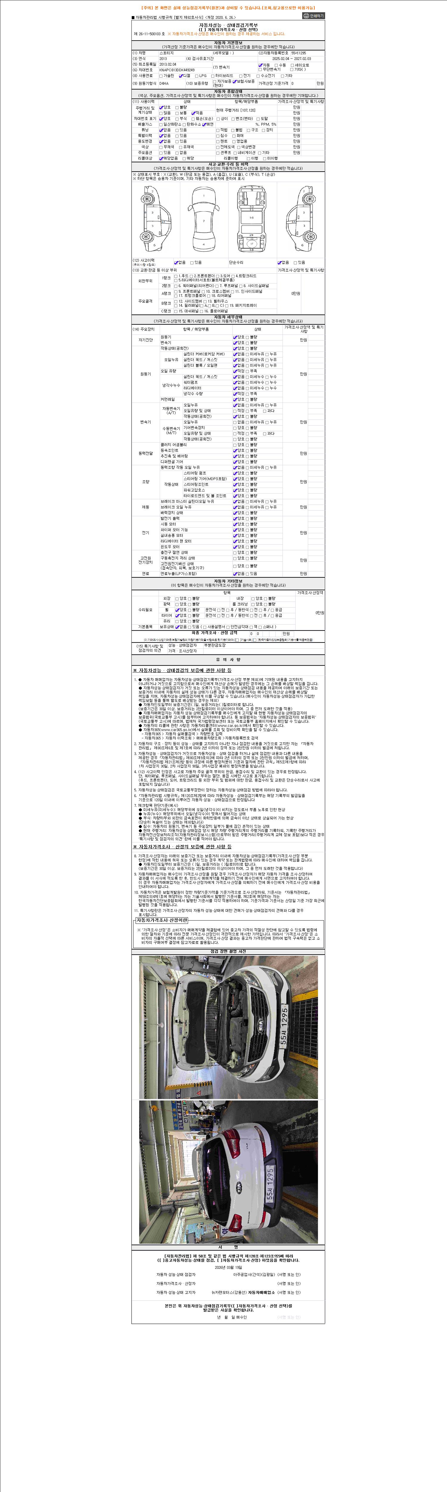 2. 차량 등록증이나 성능점검지 등을 상담자에게 요청및 확인하시고 사전에 미리 점검 하시기를 권유드립니다.