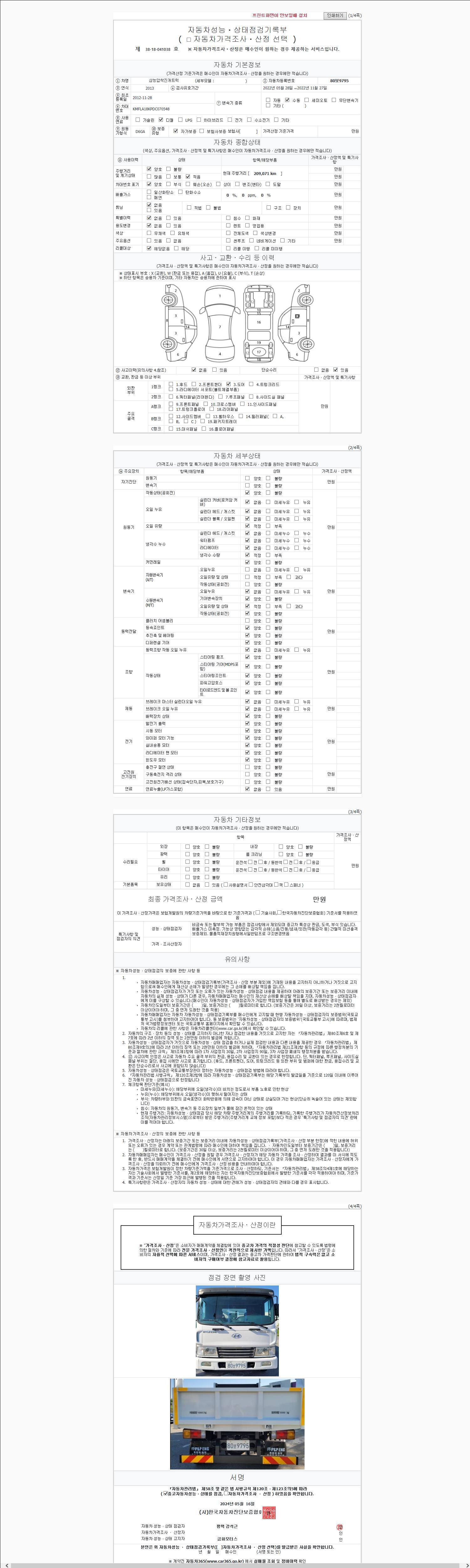 | 주행거리 | 208,691 km | 차량번호 | 80보9795 |