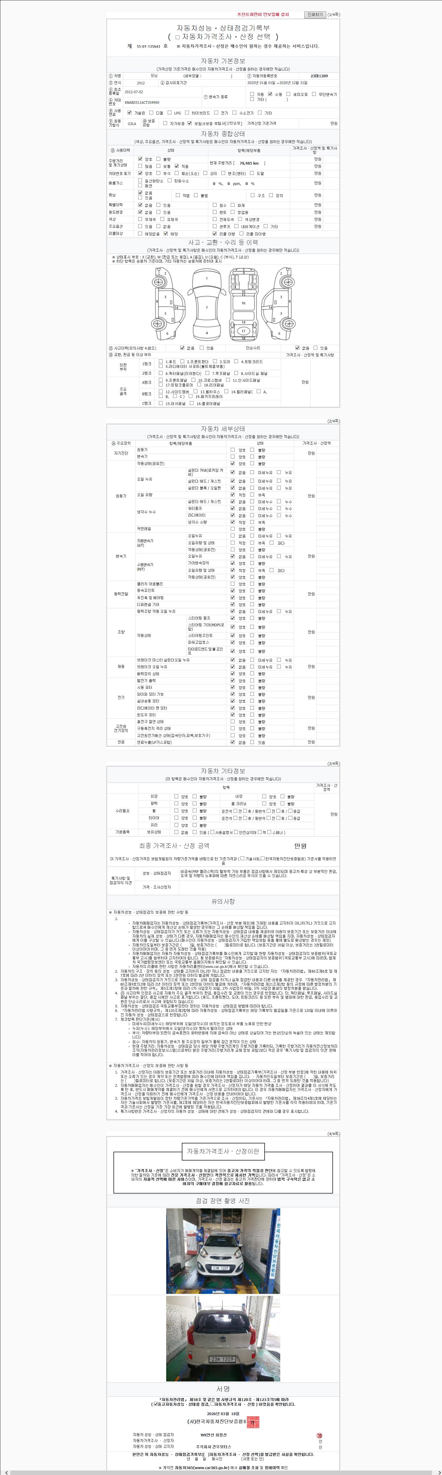 -중고자동차 매매업자를 통해 차량을 구입하실 경우 반드시 "중고자동차 성능, 상태점검 기록부"를 교뷰 받으셔야 하며, 매매업자는 반드시 의무 교부 하여야 압니다.