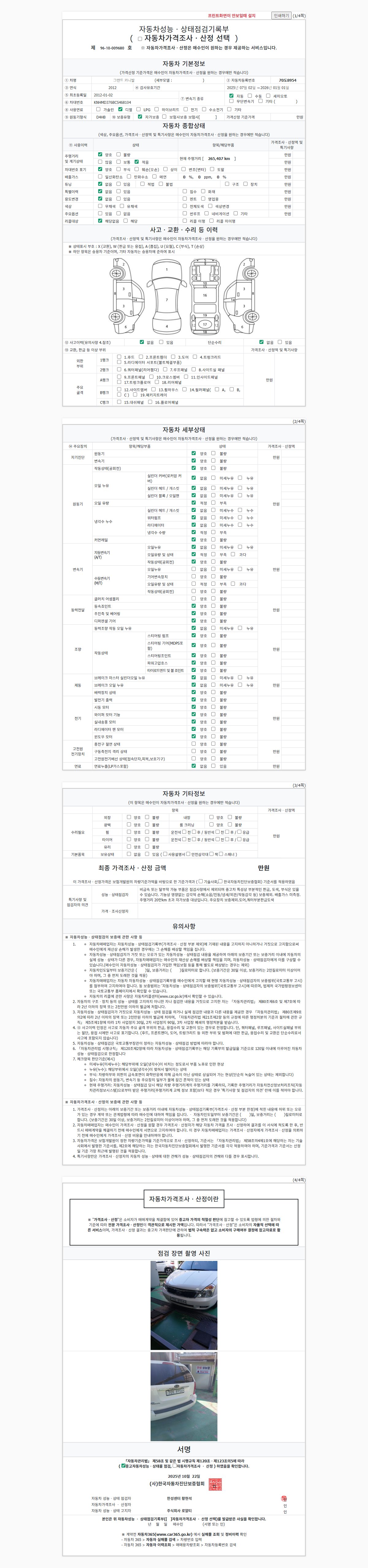| 주행거리 | 265,407 km | 차량번호 | 70도8954 |