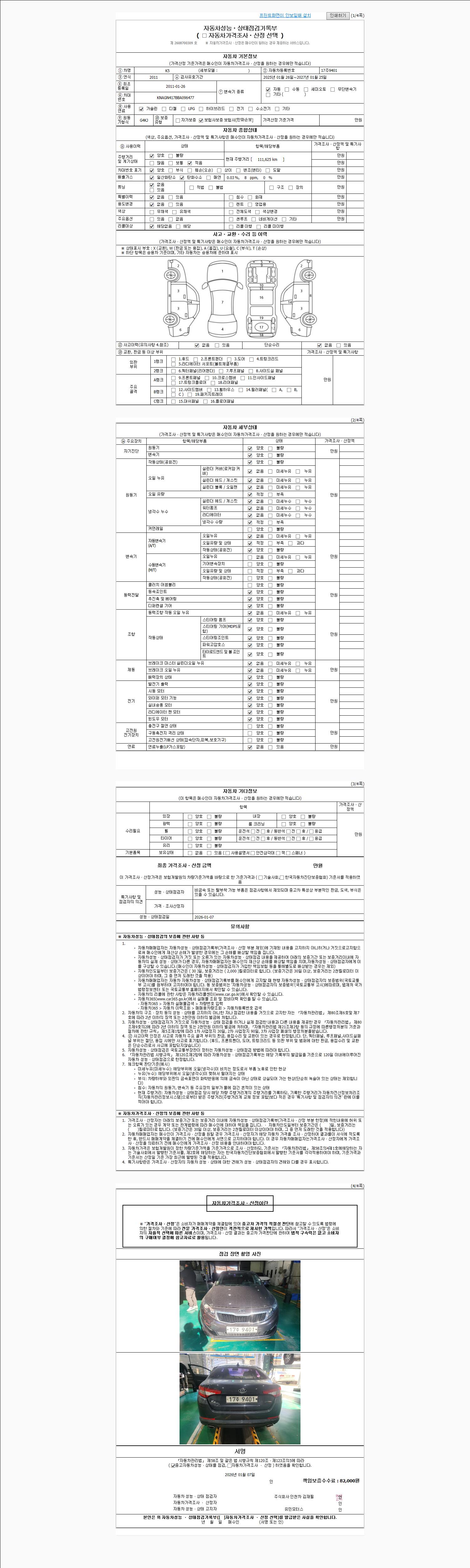 | 사고유무 | 성능기록부 참조 | 제시번호 | 제 2026001827 호 |