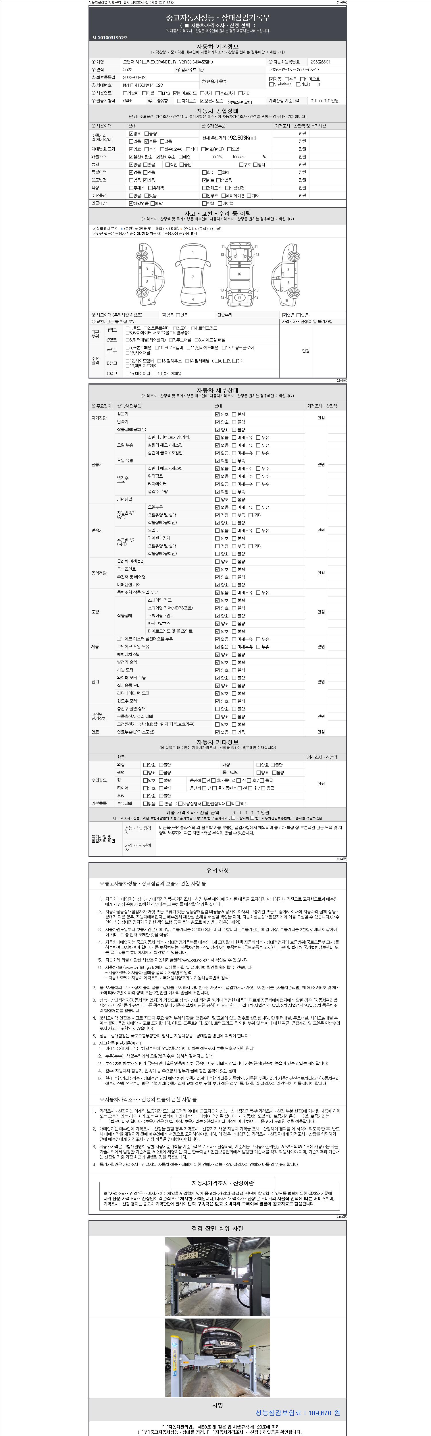 오토|휘발유 하이브리드|2022년 3월|92,803 km 293고6601| cc|검정색|무사고 |