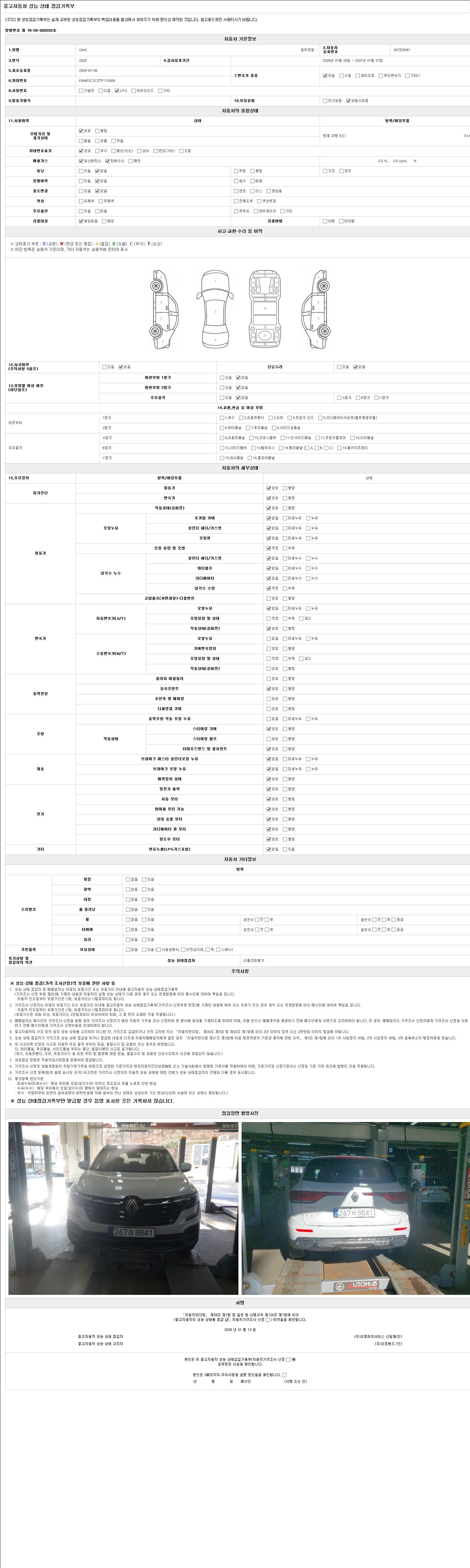 2. 차량 등록증이나 성능점검지 등을 상담자에게 요청및 확인하시고 사전에 미리 점검 하시기를 권유드립니다.